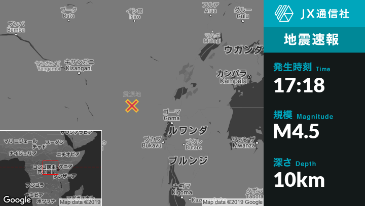 | 震源地 | コンゴ民主共和国のSakeから西北西193kmの地点 |