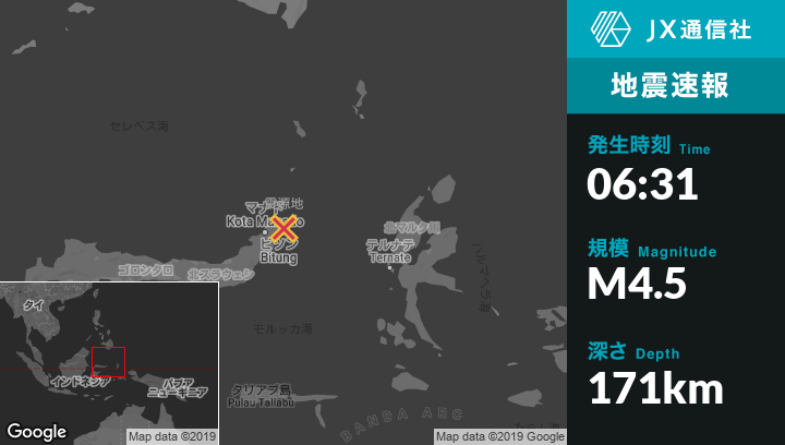 | 震源地 | インドネシアのBitungから北25kmの地点 |