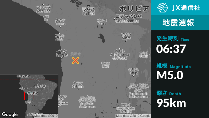 | 震源地 | チリのIquiqueから東109kmの地点 |