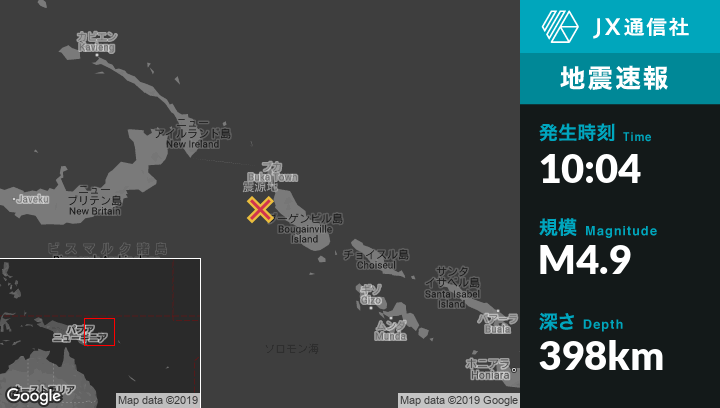 | 震源地 | パプアニューギニアのPangunaから西北西131kmの地点 |
