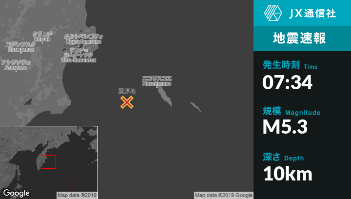 | 震源地 | ロシアのNikol'skoyeから西南西92kmの地点 |