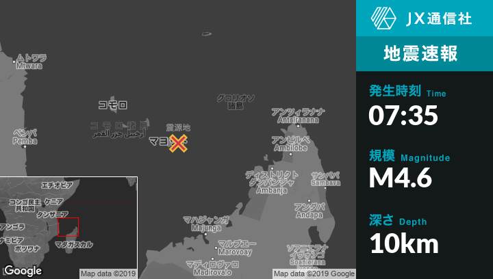 | 震源地 | MayotteのPamandziから東北東17kmの地点 |