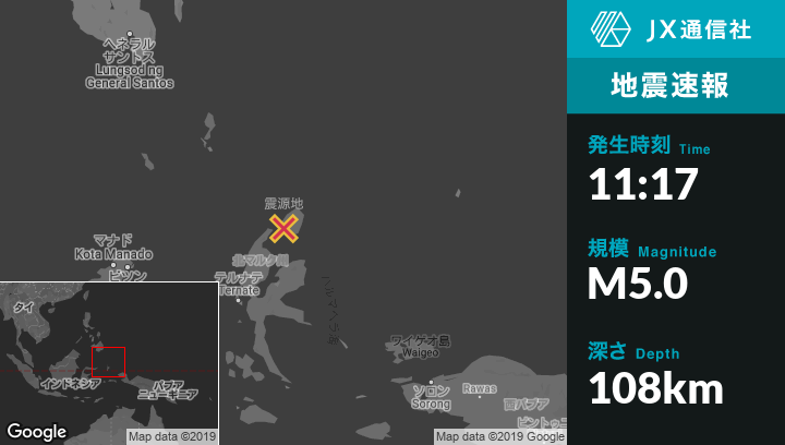 | 震源地 | インドネシアのTobeloから北北東73kmの地点 |