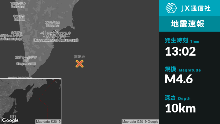 | 震源地 | ロシアのPetropavlovsk-Kamchatskiyから南東194kmの地点 |
