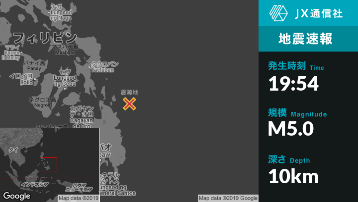 | 震源地 | フィリピンのGeneral Lunaから東63kmの地点 |
