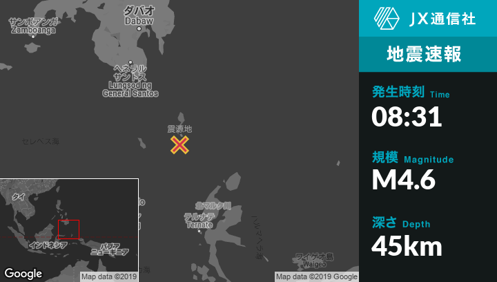 | 震源地 | フィリピンのSaranganiから南東242kmの地点 |