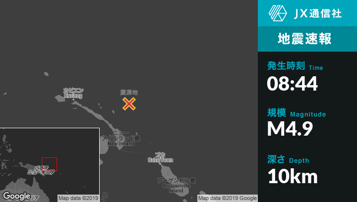 | 震源地 | パプアニューギニアのNamatanaiから北東149kmの地点 |