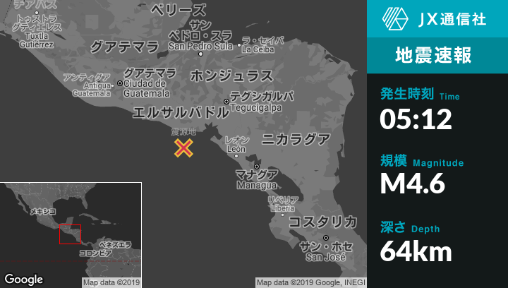 | 震源地 | エルサルバドルのPuerto El Triunfoから南54kmの地点 |