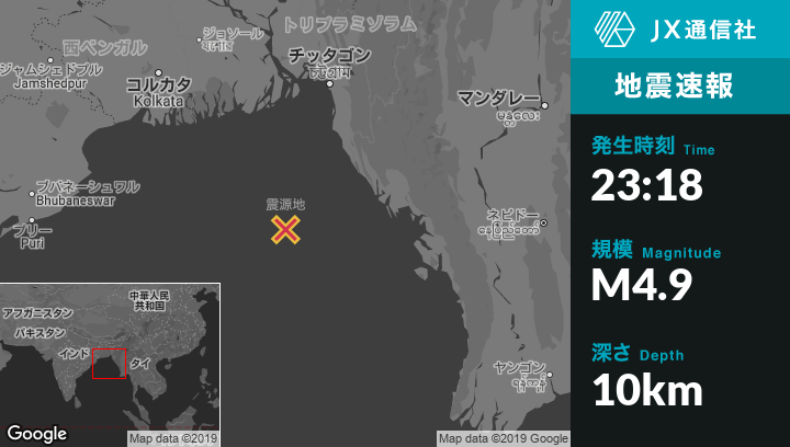 | 震源地 | バングラデシュのTeknafから南西191kmの地点 |