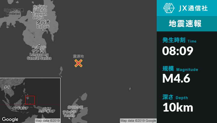 | 震源地 | フィリピンのPondaguitanから南東262kmの地点 |