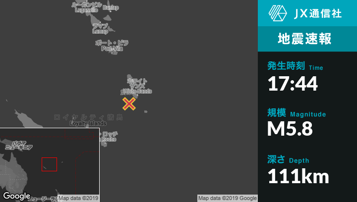 | 震源地 | バヌアツのIsangelから南西29kmの地点 |