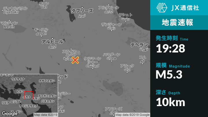 5月11日 19:28頃、イラクのHalabjahから南西32kmの地点でM5.3の地震がありました。