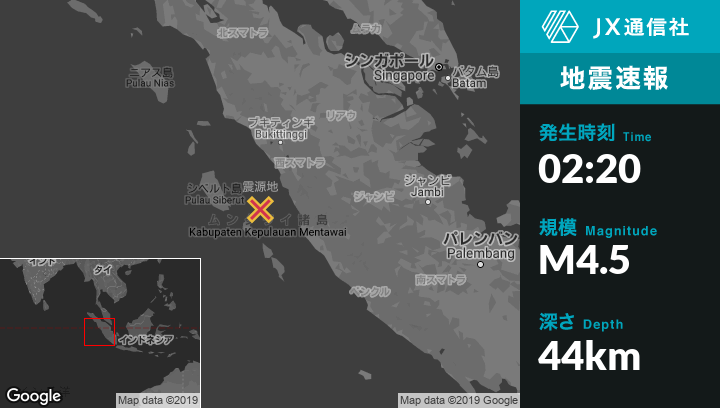 | 震源地 | インドネシアのPasarbaruから西南西74kmの地点 |