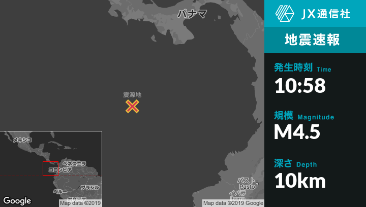 | 震源地 | パナマのPunta de Buricaから南371kmの地点 |