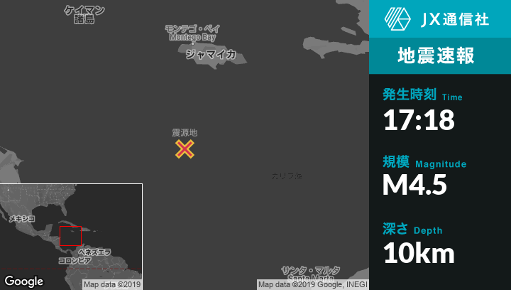 | 震源地 | ジャマイカのRocky Pointから南南西270kmの地点 |