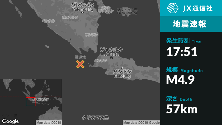| 震源地 | インドネシアのCangkeuteuk Sabrangから西114kmの地点 |