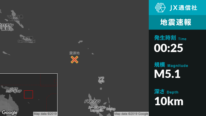 | 震源地 | ソロモン諸島のLataから南南西144kmの地点 |