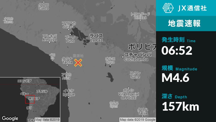 5月13日 06:52頃、チリのPutreから北55kmの地点でM4.6の地震がありました。