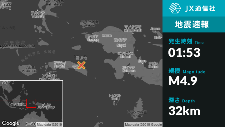 | 震源地 | インドネシアのAmahaiから東北東171kmの地点 |