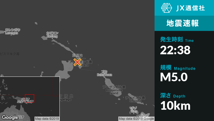 | 震源地 | パプアニューギニアのKokopoから東北東48kmの地点 |