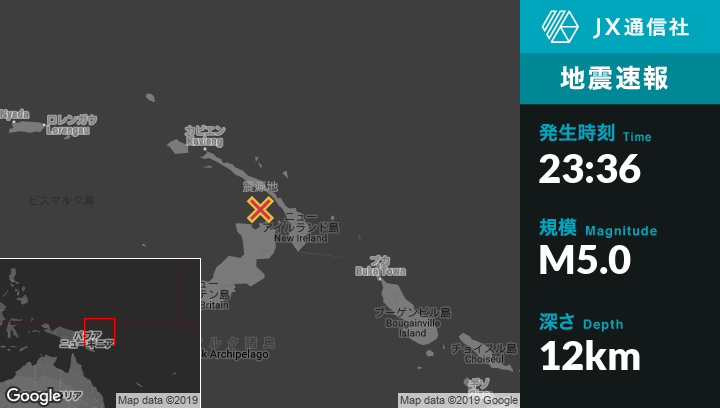 | 震源地 | パプアニューギニアのNamatanaiから西南西47kmの地点 |