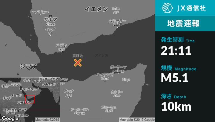 | 震源地 | イエメンのZinjibarから南東138kmの地点 |
