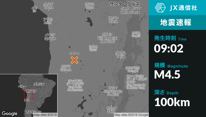 | 震源地 | チリのCalamaから北北東129kmの地点 |