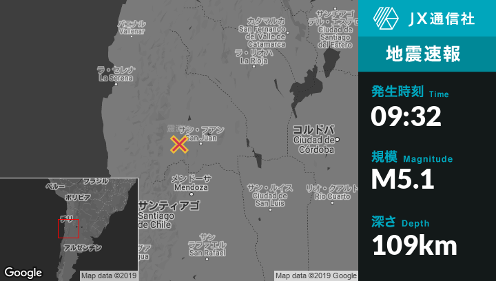 | 震源地 | アルゼンチンのCalingastaから南東21kmの地点 |