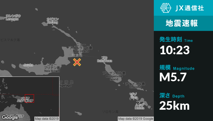 | 震源地 | パプアニューギニアのTaronから南南西95kmの地点 |