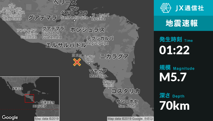 | 震源地 | ニカラグアのJiquililloから西南西39kmの地点 |