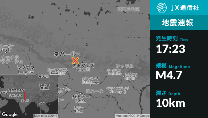 | 震源地 | ネパールのBharatpurから北東37kmの地点 |