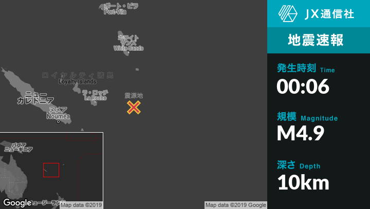 | 震源地 | ニューカレドニアのTadineから東186kmの地点 |
