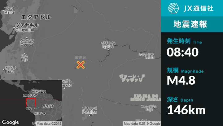 | 震源地 | ペルーのLagunasから北東77kmの地点 |