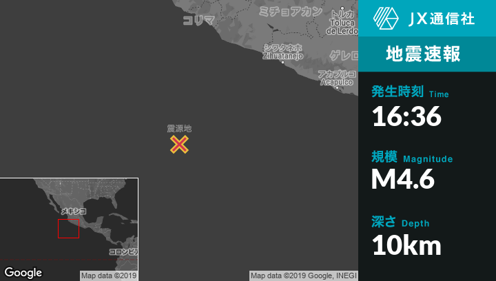 | 震源地 | メキシコのCoahuayanaから南南西404kmの地点 |