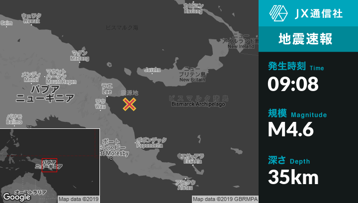 | 震源地 | パプアニューギニアのFinschhafenから南南東41kmの地点 |