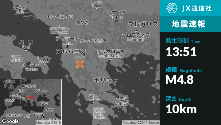 | 震源地 | アルバニアのErsekeから北北東14kmの地点 |