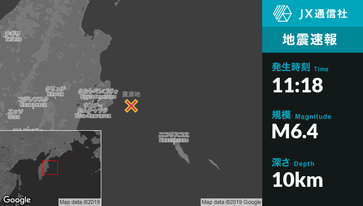 6月26日 11:18頃、ロシアのUst'-Kamchatsk Staryyから東102kmの地点でM6.4の地震がありました。