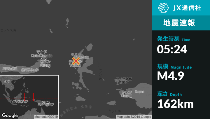 | 震源地 | インドネシアのTernateから北68kmの地点 |