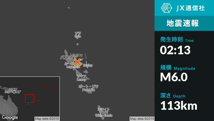| 震源地 | バヌアツのLuganvilleから東北東35kmの地点 |