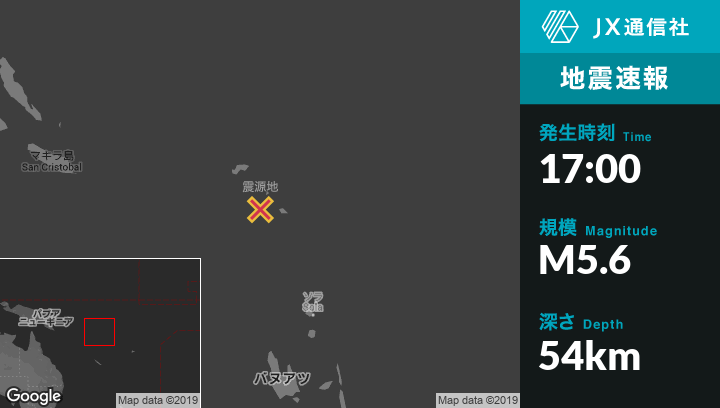 7月02日 17:00頃、ソロモン諸島のLataから南東106kmの地点でM5.6の地震がありました。