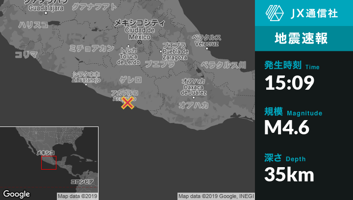 | 震源地 | メキシコのXaltianguisから南東19kmの地点 |