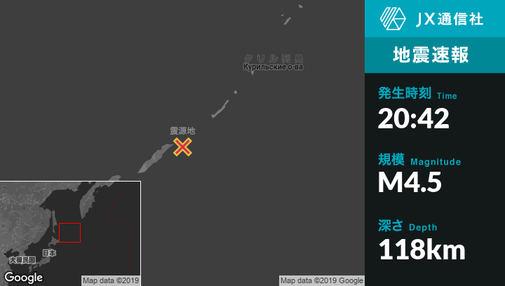 | 震源地 | ロシアのKuril'skから東北東253kmの地点 |