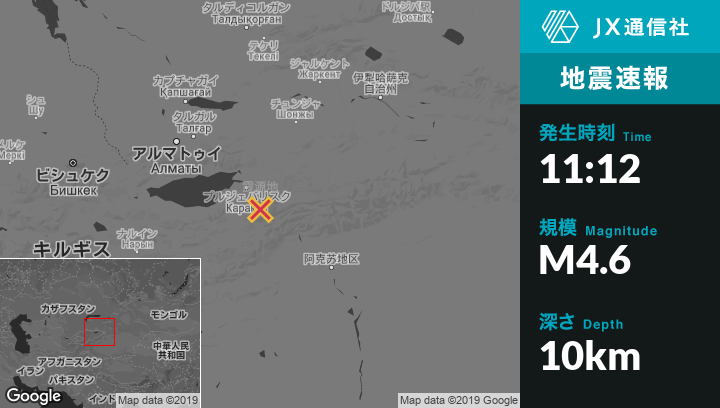 7月05日 11:12頃、キルギスタンのTeploklyuchenkaから南南東35kmの地点でM4.6の地震がありました。