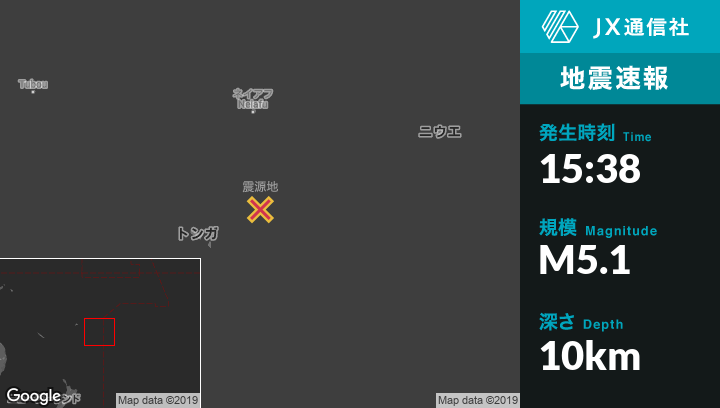 | 震源地 | トンガのPangaiから南南東100kmの地点 |