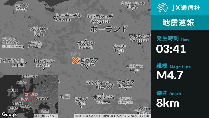 | 震源地 | ポーランドのPolkowiceから東4kmの地点 |