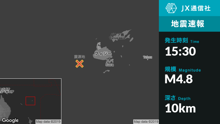 | 震源地 | フィジーのNadiから西南西136kmの地点 |