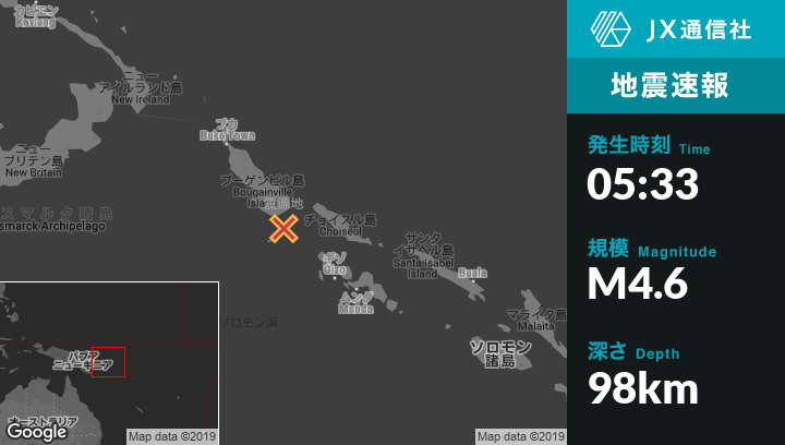 | 震源地 | パプアニューギニアのPangunaから南南東82kmの地点 |