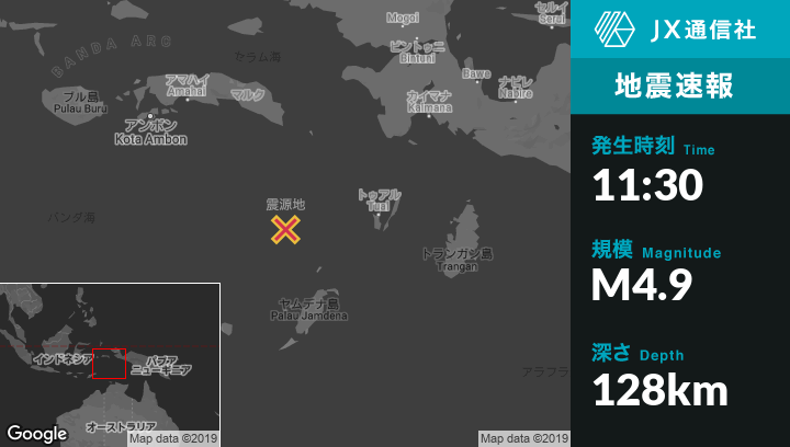 | 震源地 | インドネシアのTualから西205kmの地点 |