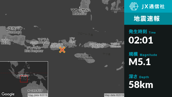 | 震源地 | インドネシアのPisangkemengから南南東14kmの地点 |