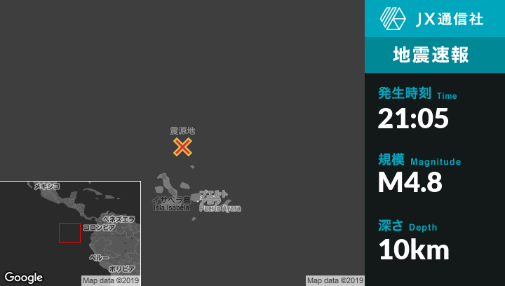 | 震源地 | エクアドルのPuerto Ayoraから北北西205kmの地点 |